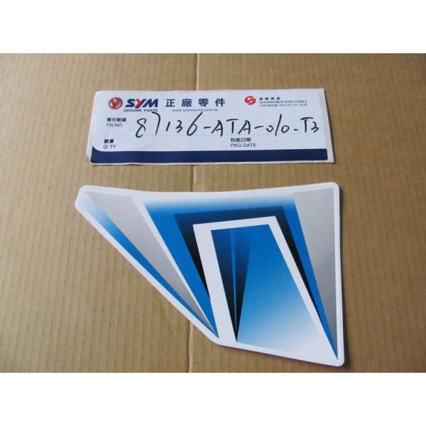 Description La pièce autocollant gauche face avant référence 87136-ATA-010-T3 est une pièce d'origine du constructeur SYM et est exactement la même que celle montée à la sortie de l'usine du véhicule.
