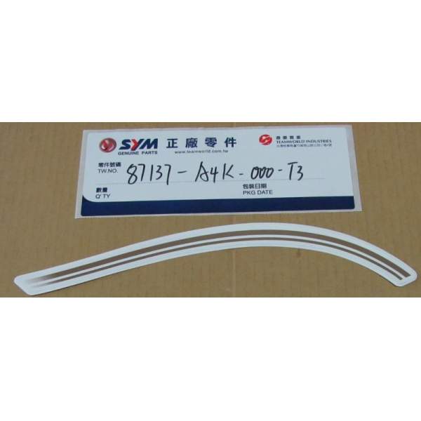 Description La pièce fr.fender r.stripe référence 87137-A4K-000-T3 est une pièce d'origine du constructeur SYM et est exactement la même que celle montée à la sortie de l'usine du véhicule.